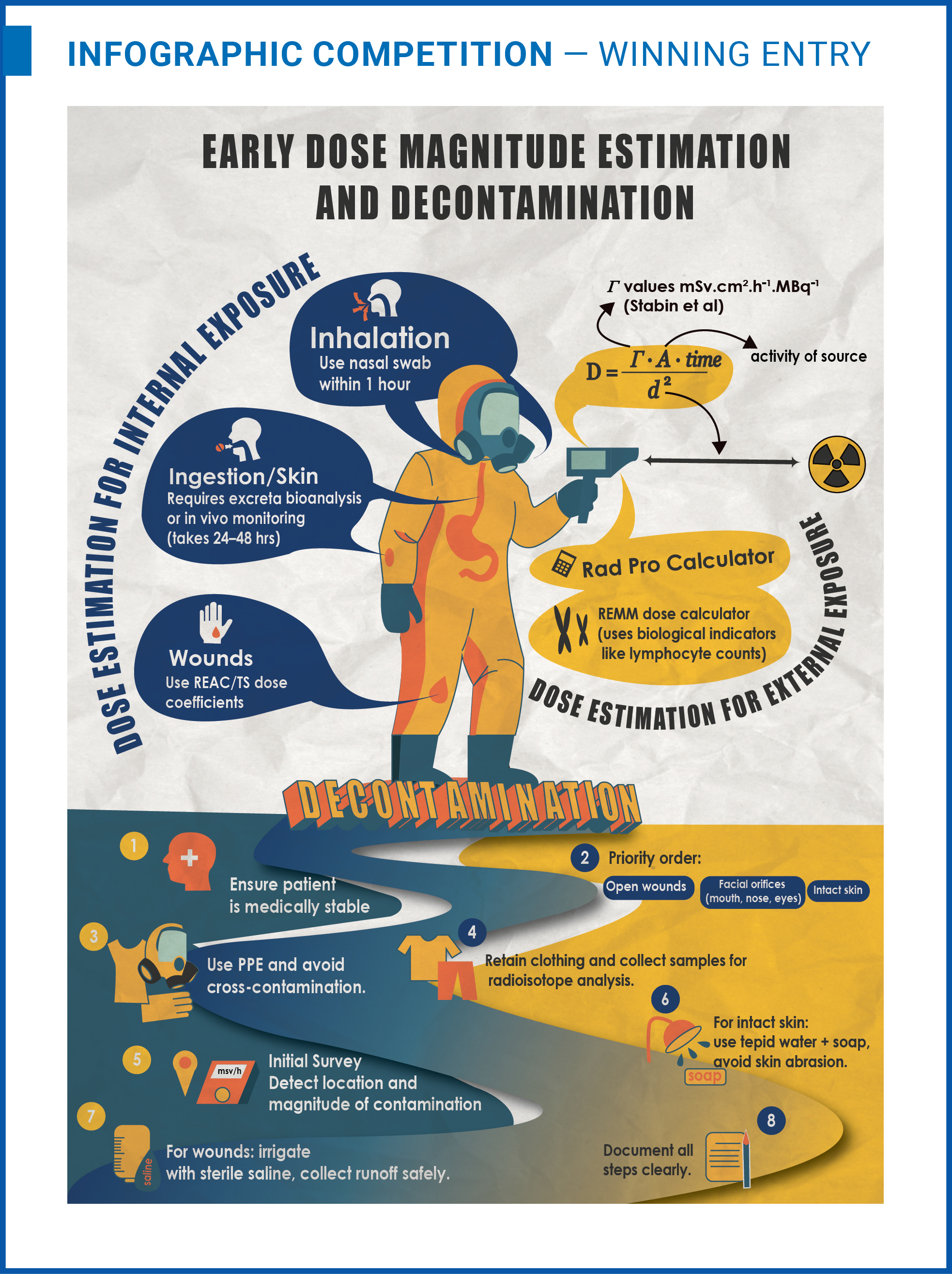 “This infographic stood out to the judges because it takes one of the most technical areas of emergency preparedness and response — dose estimation and decontamination after a radiological incident — and makes it both clear and practical. It shows exactly what medical physicists need to do, step by step, in a way that is accurate, accessible and visually engaging. That combination of scientific precision and real-world usability is what made it the judges’ top choice,” said Bethsaida Zamora, the IAEA’s coordinator for this contest.
