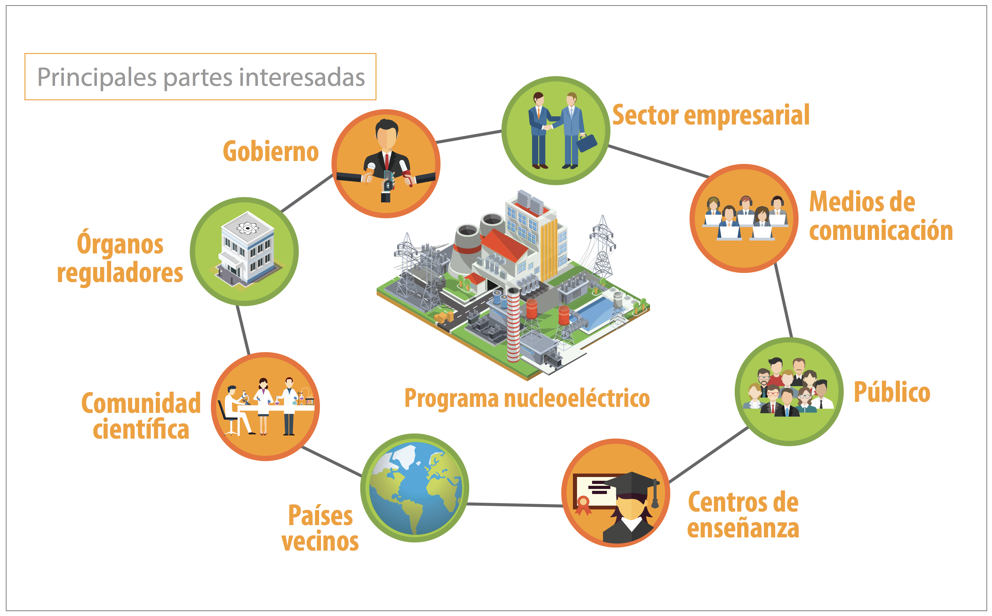 Una de las mayores dificultades a las que se enfrentan los programas nucleoeléctricos es la de obtener el apoyo de los principales interesados, entre ellos el público, y mantenerlo. Lo mismo sucede en los países que están considerando la posibilidad de incluir la energía nucleoeléctrica en su canasta de energía para asegurar la sostenibilidad energética y mejorar el desarrollo económico e industrial.