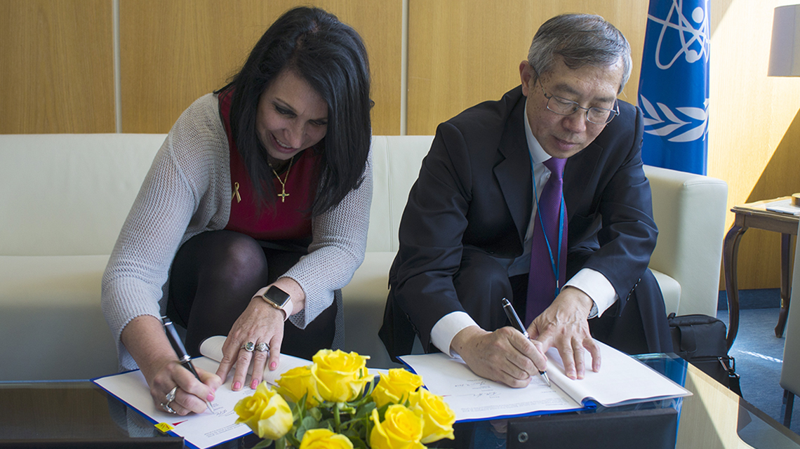 Un nouveau partenariat permettra à l’AIEA de mieux aider les pays à revenu faible et intermédiaire à accro?tre l’accès à la détection précoce et au traitement des cancers pédiatriques. Conformément à l’accord de coopération qu’elle a signé au début du mois de juin 2018 avec l’organisme Childhood Cancer International (CCI), l’AIEA collaborera avec celui-ci en vue de proposer des formations spécialisées aux professionnels de santé travaillant en pédiatrie, de sensibiliser davantage à la question du cancer pédiatrique et de mobiliser des ressources pour aider les enfants atteints de cancer dans ses états Membres.