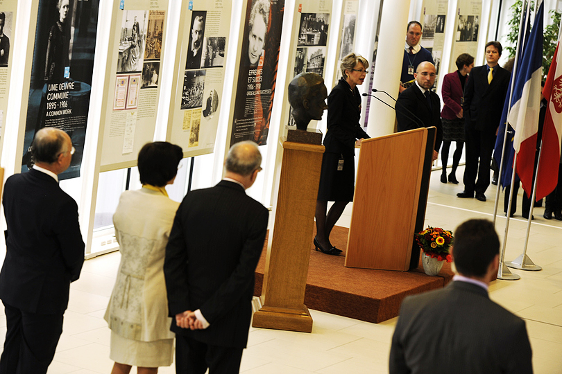 At IAEA headquarters in December, dignitaries and politicians pay tribute to the life and achievements of Marie Sk?odowska-Curie, one of the greatest scientists of the 20th century. The event was the opening of the French-Polish exhibit honoring the centennial of the award of Madame Curie's second Nobel Prize. (Photo: D. Calma/IAEA)