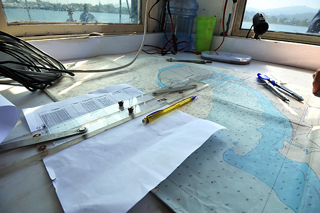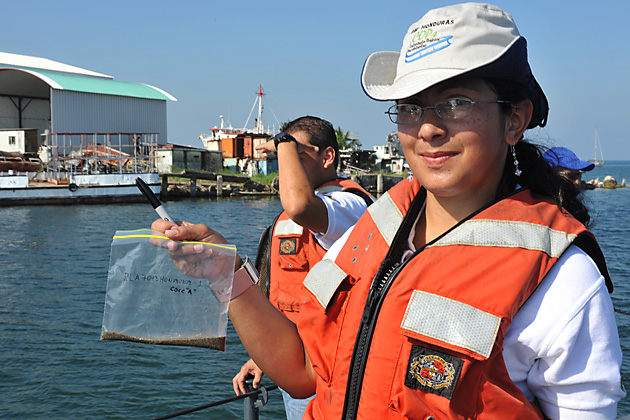 The sampling work involved criss-crossing the waters of Puerto Cortes to take samples at pre-selected zones.