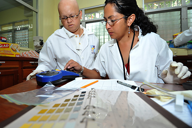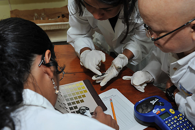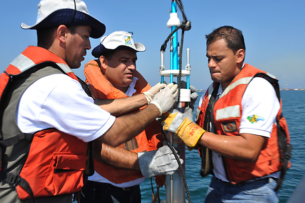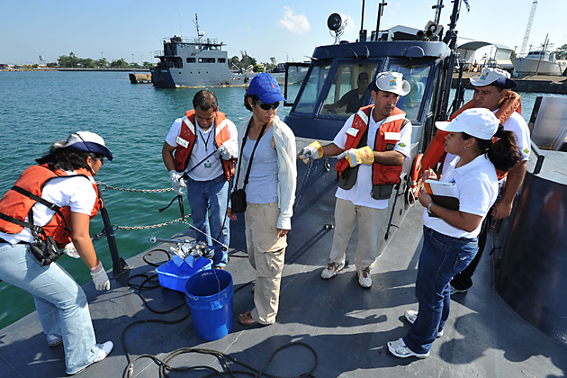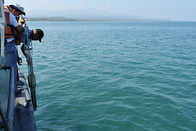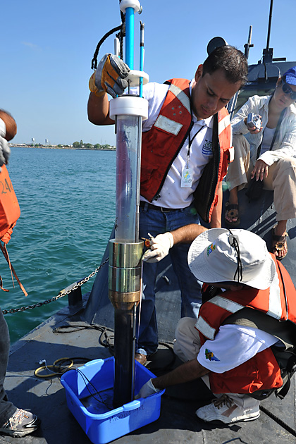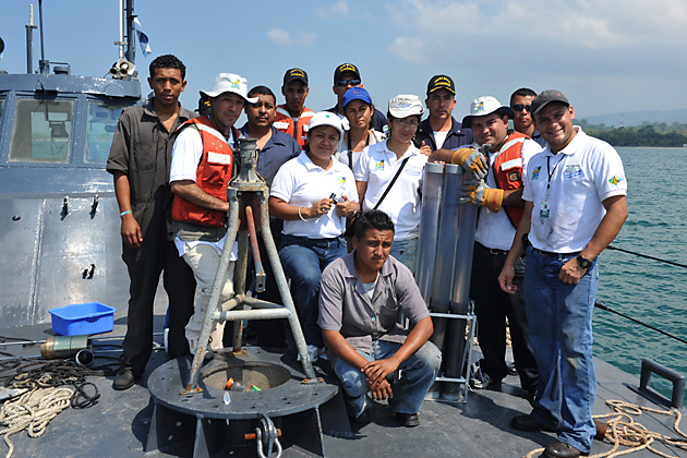 For the core sampling fieldwork in Honduras, a team of scientists from the country's Center for the Study and Control of Pollutants (CESCCO) was guided by regional expert Miguel Gomez Batista from Cuba on proper procedures for collecting surface and sediment samples.