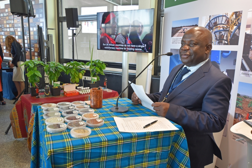 To highlight the work implemented through the AFRA Regional Cooperative Agreement, a week-long exhibition took place at a made-for-purpose exhibition stand. The exhibition showcased new mutant seed varieties developed with IAEA support, footage of capacity building events organized throughout the region, and a new brochure documenting IAEA technical cooperation activities in Africa.