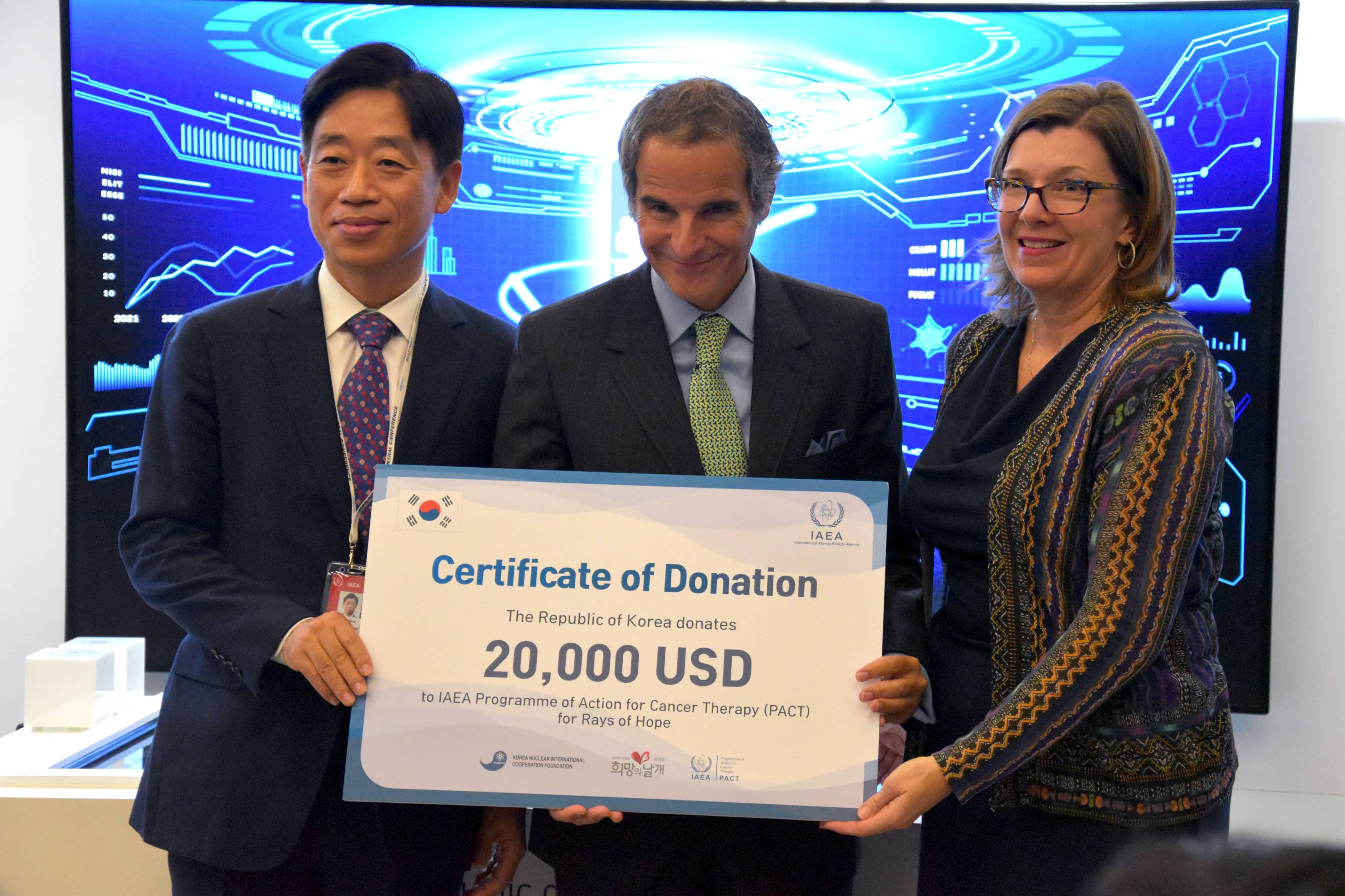Throughout GC66, speakers and guests agreed on the need to tap into diverse funding sources to extend the reach and impact of IAEA activities. During the General Conference, the IAEA’s Programme of Action for Cancer Therapy (PACT) received new donations from Belgium, the Principality of Monaco, and from members of the Korean public, whose contributions were presented by the Nuclear International Cooperation Fund (KONICOF).