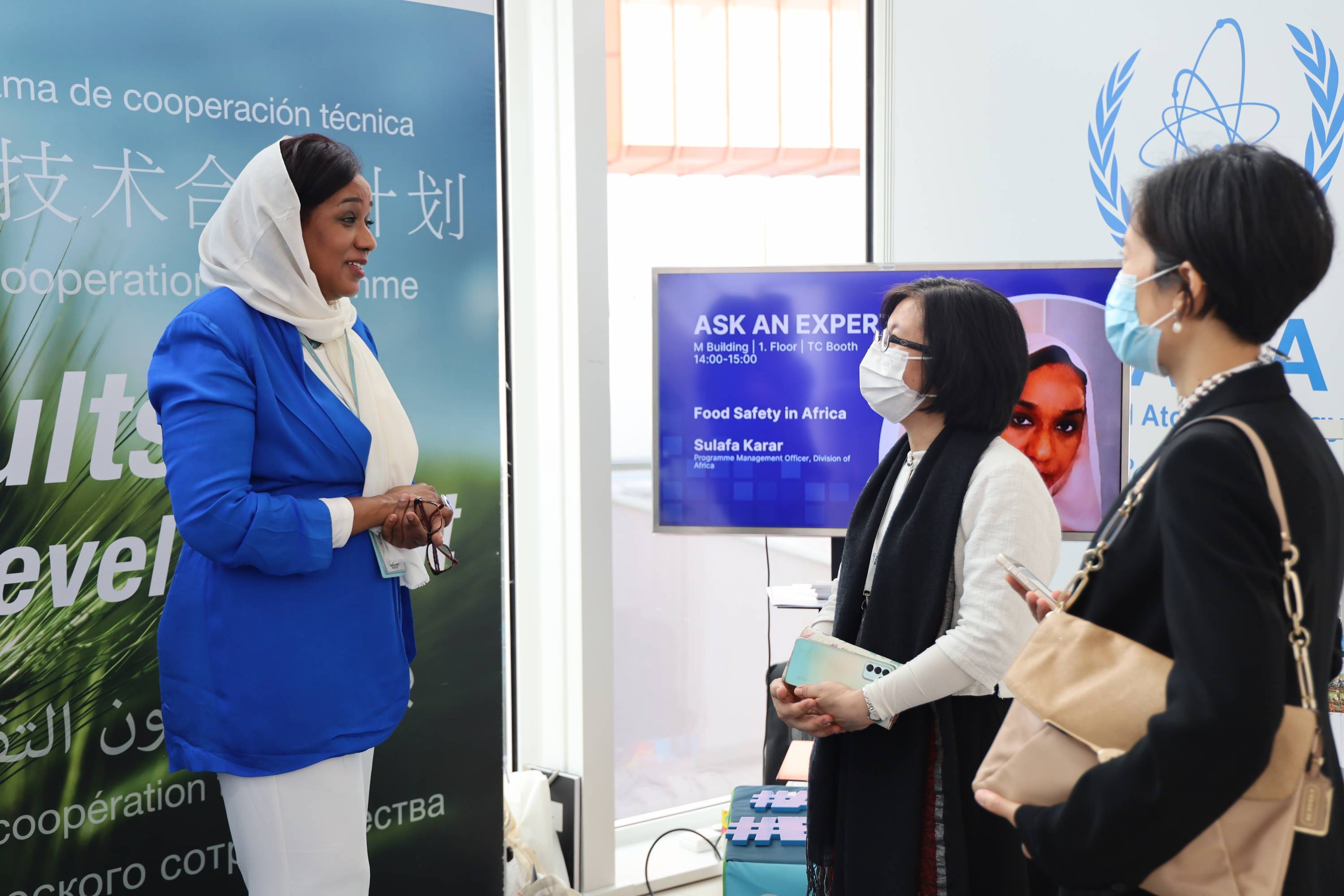 At the IAEA exhibition, the Department of Technical Cooperation booth offered conference-goers and interested visitors an opportunity to learn more about the technical cooperation programme and its impact. At lunch time, IAEA staff held ‘Ask an Expert’ sessions, taking questions on IAEA support for cancer care, procurement, STEM education, food security and more.