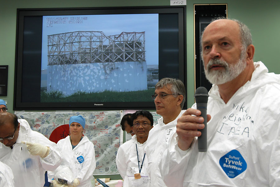 27 May 2011. Mike Weightman, leader of a team of international safety experts visiting Japan on a fact-finding mission, speaks to workers at the technical support center of TEPCO's Fukushima Daiichi nuclear power plant. This center serves as operational headquarters for recovery efforts at the plant.