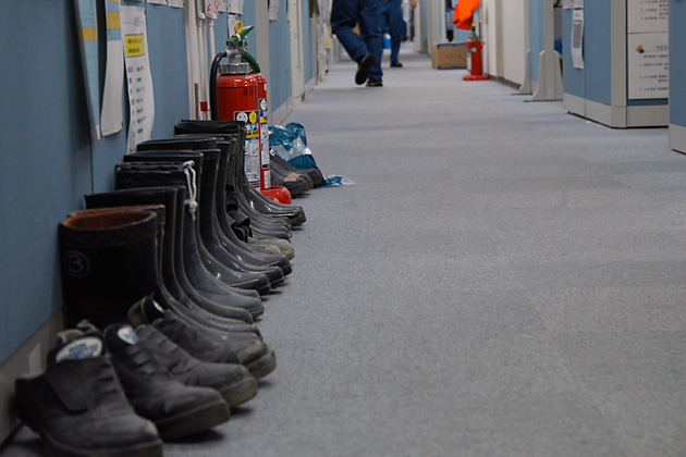 Please remove your shoes before entering. Personnel at TEPCO's Fukushima Daini nuclear power plant work around the clock, and have established rest areas for weary staff at the emergency headquarters.