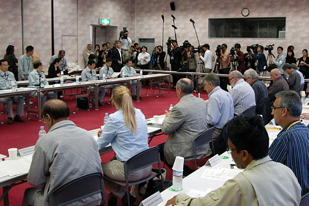 Japanese media witness the first meeting of the IAEA fact-finding mission with Japanese officials at the Tokai nuclear power plant on 26 May 2011.