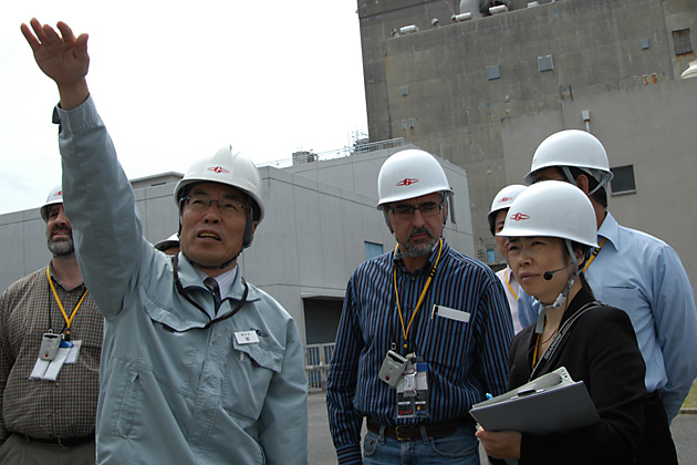 IAEA fact-finding team members tour Japan's Tokai nuclear power plant on 26 May 2011.