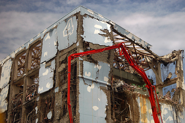 Japanese workers have used the red giraffe, a pumping truck, to pump water into the spent fuel pool at Reactor Unit 4 at TEPCO's Fukushima Daiichi nuclear power plant on 27 May 2011. IAEA fact-finding team members toured the plant on 27 May 2011.