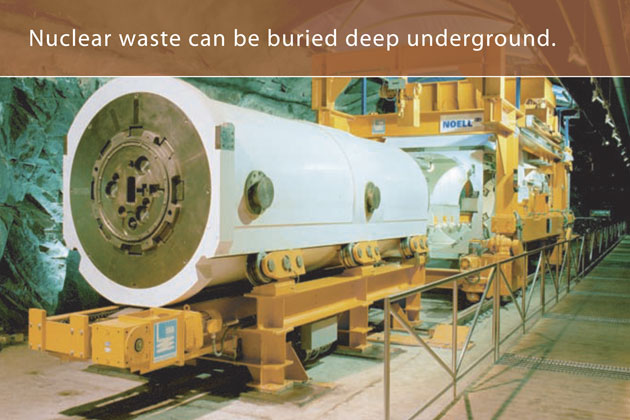 <p>HIGH LEVEL WASTE DISPOSAL</p><p>Spent nuclear fuel or high level waste can be safely disposed of deep underground, in stable rock formations such as granite, eliminating the health risk to people and the environment. The first disposal facilities will be in operation around 2020.</p><p>Waste will be packed in long-lasting containers and buried deep in the geological formations chosen for their favorable stability and geochemistry, including limited water movement. These geological formations have proven stability over hundreds of millions of years, far longer than the waste is dangerous.</p> © SKB / Sweden