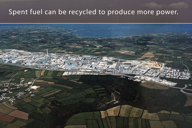 <p>REPROCESSING</p><p>The spent fuel contains uranium (96%), plutonium (1%) and waste products (3%). The uranium, with less than 1% fissile U-235 and the plutonium can be reused as fuel.</p><p>Some countries, which have choosen the closed fuel cycle, chemically reprocess spent fuel to separate the useable material, i.e. uranium and plutonium, from the unusable waste. Reprocessing facilities are large industrial facilities.</p><p>Recovered uranium from reprocessing can be returned to the conversion plant for conversion to uranium hexafluoride and subsequent re-enrichment. Plutonium is mixed with uranium to form new fuel (MOX fuel).</p> © COGEMA / Areva