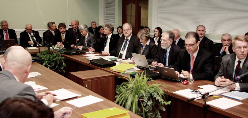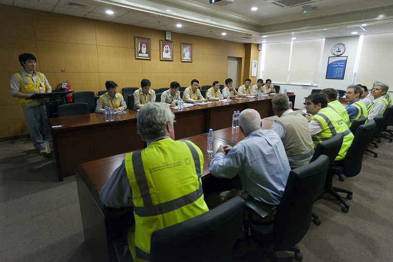 Expert peer review - An expert peer review of the current extent of compliance with IAEA standards provides a good indicator of the effectiveness of the regulatory oversight of nuclear, radiation protection, emergency preparedness, waste and transport safety and security of radioactive sources. <em>(Photo taken during the UAE 2011 IRRS Mission)</em>.