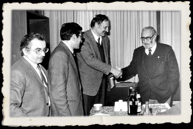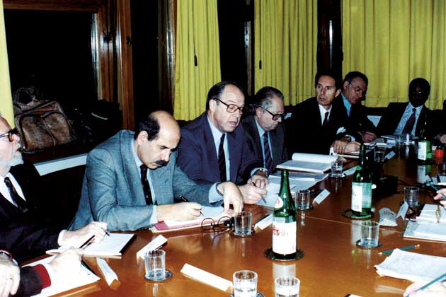 A meeting with IAEA Director General Hans Blix, IAEA Deputy Director General Maurizio Zifferero and IAEA Director of Administration Mohamed ElBaradei, ICTP, 1991.