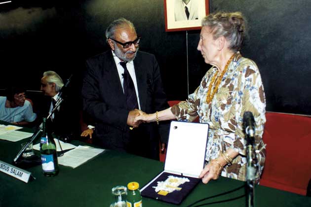 Ms. Margit Dirac, widow of Paul A.M. Dirac, receives an 'honorary' ICTP Dirac Medal, ICTP, 1991.
