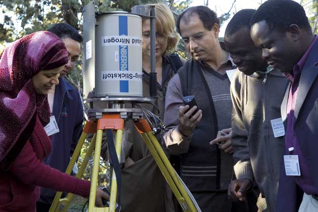 Participants with a gamma detector at the ICTP-IAEA Workshop on Understanding and Evaluating Radioanalytical Measurement Uncertainty, ICTP, November 2007.