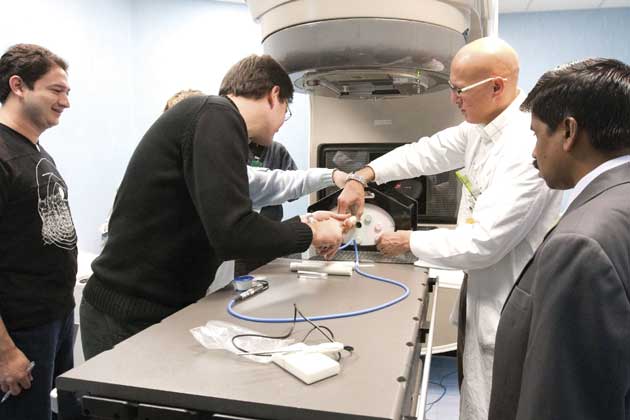 Practical session at Trieste Hospital using a linear accelerator during the Joint ICTP-IAEA School on Quality Assurance in Radiotherapy, Trieste, December 2008.