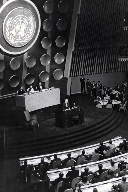 President Eisenhower makes his 'Atom for Peace' proposal to the United Nations General Assembly. UN New York, 8 December 1953 (Photo Credit: United Press International Photo)