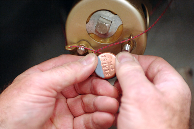IAEA metallic seals are attach by inspectors to prevent tampering. The seals protect against any unauthorized attempt to gain access to the secured material. Vasteras, Sweden, November 2005 (Photo Credit: Dean Calma)