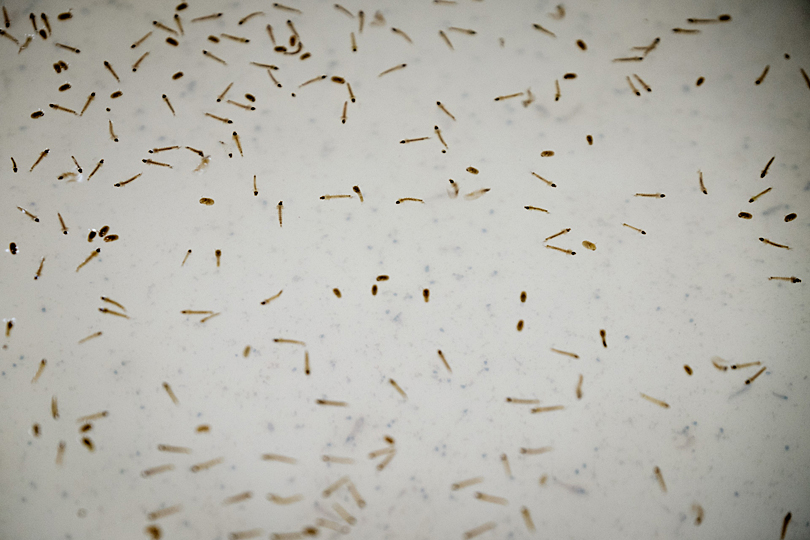 At the laboratory in Seibersdorf, the whole life cycle of the mosquito (adults-eggs-larvae-pupae) is constantly repeated. Entomologists have already developed a mass-rearing system for the pests and currently up to 125,000 adult male and female mosquitoes live and mate in specially-built cages.