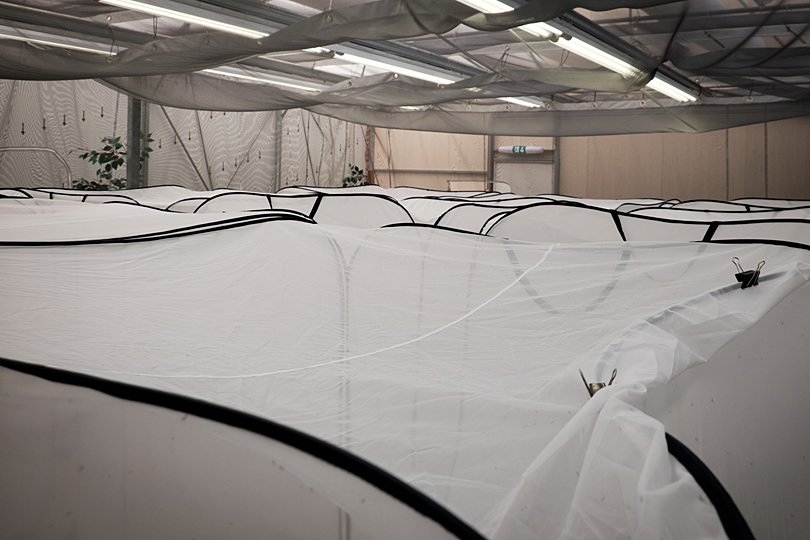 At the laboratory the interaction between fertile and sterile males competing for females is closely observed and assessed. This takes place in a greenhouse that was designed to mimic the natural habitat of these tropical pests.