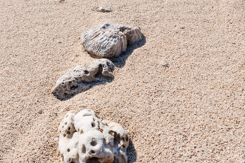 With changing climatic conditions, both increase in temperature and lowering of pH, the corals of Gulf are under stress, causing coral bleaching. This image shows calcified, dead corals.
