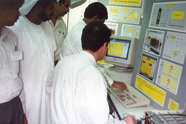 Many countries do not generate large amounts of radioactive wastes. Yet they require technical assistance and guidance to establish sufficient infrastructures and capabilities for managing and disposing of wastes in safe, secure and affordable ways. IAEA projects provide support for research, training, equipment, and expert services to national authorities. (Photo Credit: K. Skornik/IAEA; scene from training in radiation safety in the Middle East)