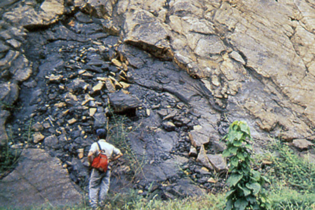 Natural analogues are helping scientists study how geologic barriers can isolate radioactive waste. In Oklo, Gabon, French scientists studying a uranium mine discovered that a natural nuclear chain reaction occurred there nearly two billion years ago that generated plutonium and other transuranic elements. The materials stayed immobile, held in place by the surrounding geology. (Photo Credit: NAGRA, Switzerland; View of the Oklo Site)