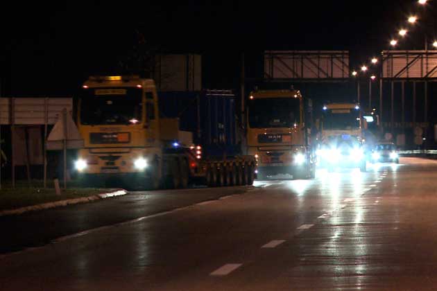 On 18 November 2010, the fuel transfer began with workers loading containers onto heavy cargo trucks.