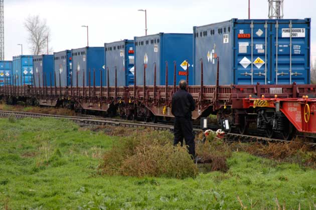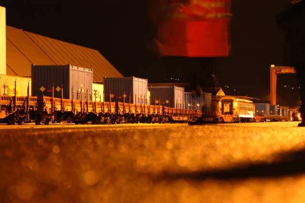 At Subotica, the containers are moved to railcars at a quiet industrial site.