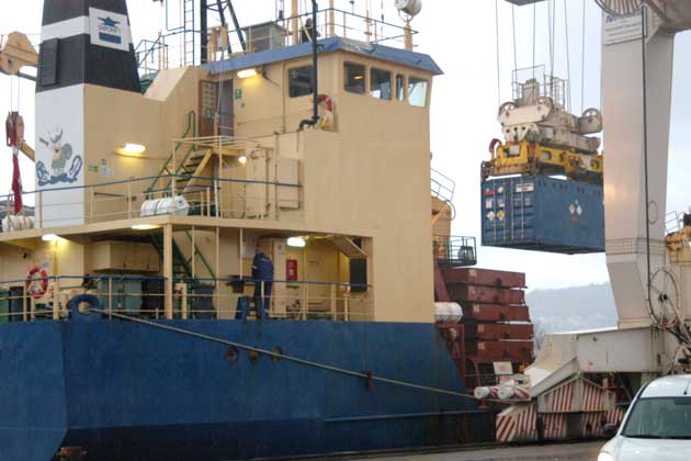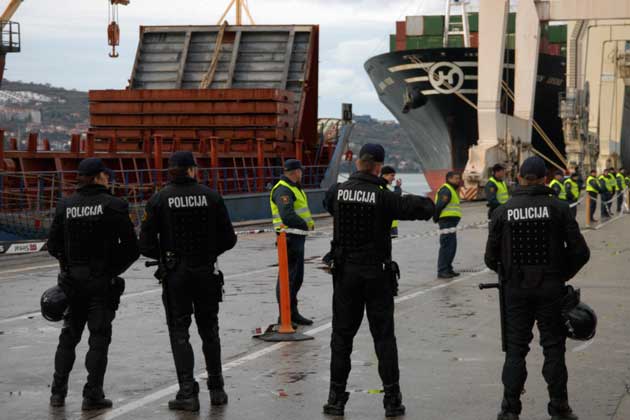 Twenty-four hours later the train arrives in the port of Koper, Slovenia, where the containers are again moved to trucks and then to a small cargo ship.