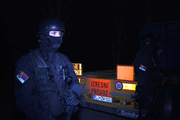 As the convoy prepares to leave Vin?a in the early morning hours, each truck is assigned a heavily armed guard. About 3000 security personnel have been mobilized to protect the shipment out of Serbia.