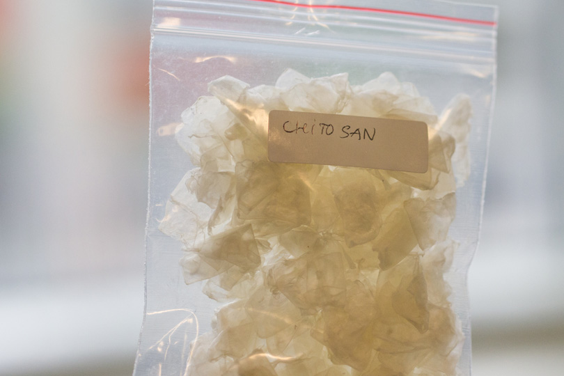 The shells of shrimps, crabs and other crustaceans are made of a polymer called chitin; and seaweeds are made of the polymers carrageenan and alginate. These and other natural polymers are the perfect building blocks from which to develop new materials because they are abundant, inexpensive, biodegradable, locally available and renewable.
