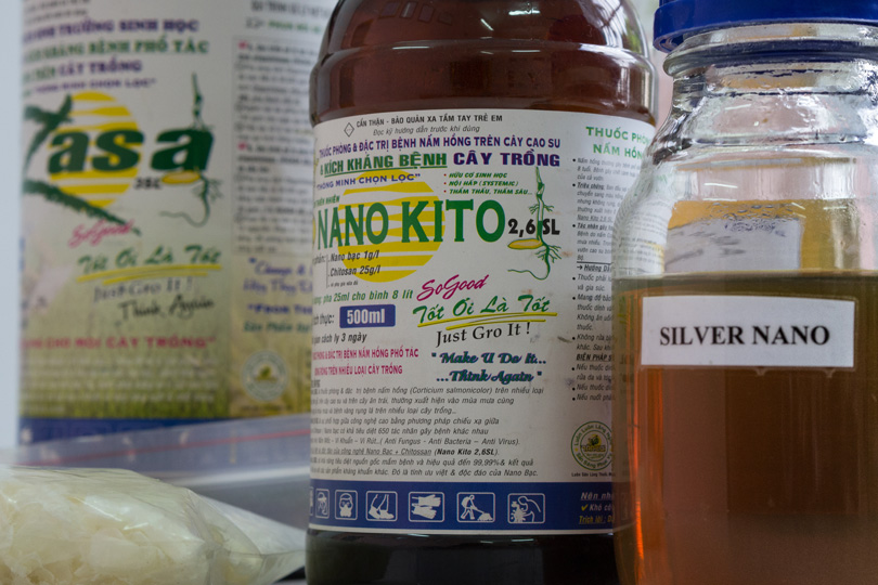 In Vietnam scientists are using the polymer chitin/chitosan found in shrimp shells to make sprays and additives that prevent and cure plant diseases and promote plant growth.