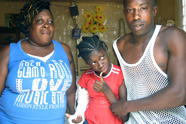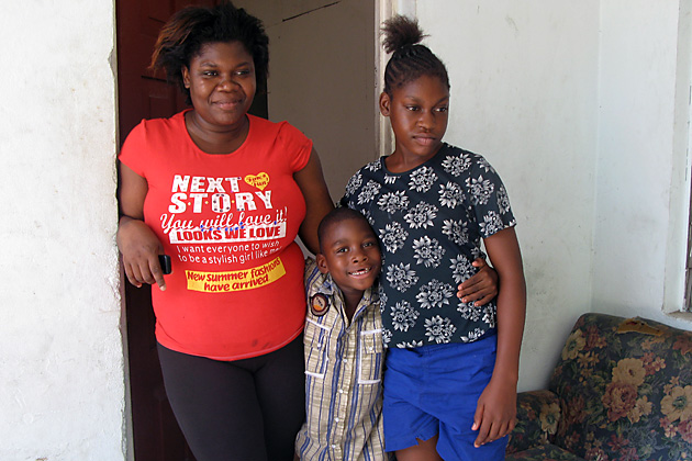 In Maverly, St. Andrew, approximately 3km from Jamaica's capital city Kingston, Sherene Thompson (left) and her children Shane (centre) and Sasha-Gaye (right) stand at the entrance to their house during the summer. The Thompson yard was once used for smelting lead from used car batteries. Shane, 8, was held back for two grades in school when he was younger. Research has linked early lead exposure to extreme learning disability, which is thought to be irreversible.