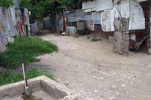 About 12km from Kingston, the sprawling squatter settlement of Mona Commons, St. Andrew, was also polluted by lead. This standpipe was the main source of water and a play area. This was also the main lead smelting site. Despite remediation efforts, the soil's lead content remains unacceptably high. Globally, lead smelting is prevalent in communities where there is high unemployment.