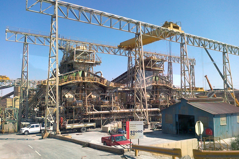 Milling is generally carried out close to a uranium mine. Uranium ore is crushed and chemically treated to separate the uranium. Shown here is a mill at the Roesing uranium mine in Namibia, 2012. Photo Credit P. Woods / IAEA