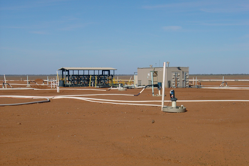 Shown here are extraction and injections wells and a well house at the Beverley in situ leaching uranium mine, South Australia. Uranium-rich solution is pumped to a central processing facility for further capture, purification and drumming. This solution is adjusted for the right chemical composition and pumped back to the wells to continue the process. Photo Credit P. Woods / IAEA