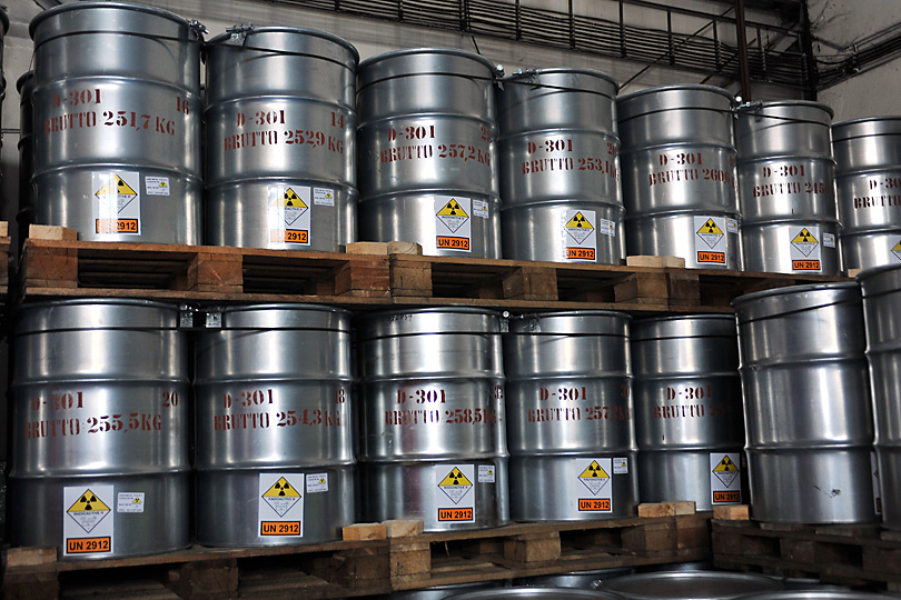 The uranium ore concentrate is shipped from the mill to a conversion facility in order to be converted into fuel. Here, drums of uranium ore concentrate from the Rozna uranium mine in the Czech Republic await shipment. Photo Credit D. Calma / IAEA