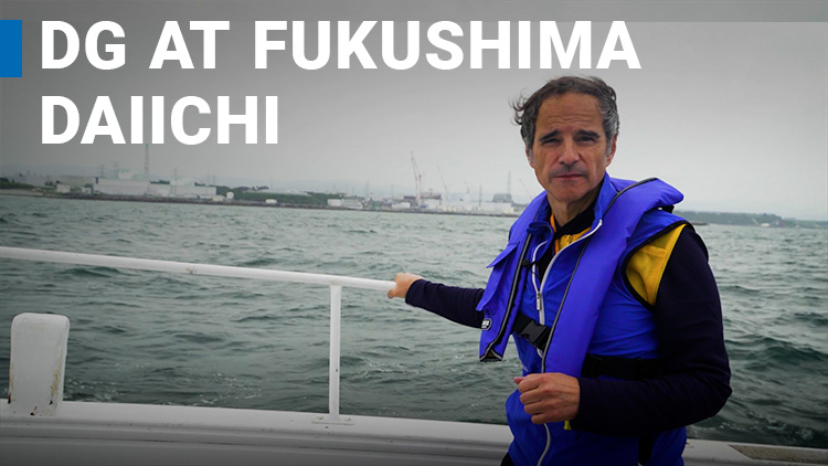 Director General Rafael Mariano Grossi speaks from a boat near the Fukushima Daiichi nuclear power station, following the IAEA’s independent assessment of Japan’s plans to release the treated water stored at the nuclear power station. Read the Comprehensive Report here.
