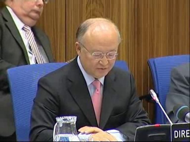 IAEA Director General Yukiya Amano discusses the NPT Review Conference declaration on cancer at the June 2010 Board of Governors meeting.