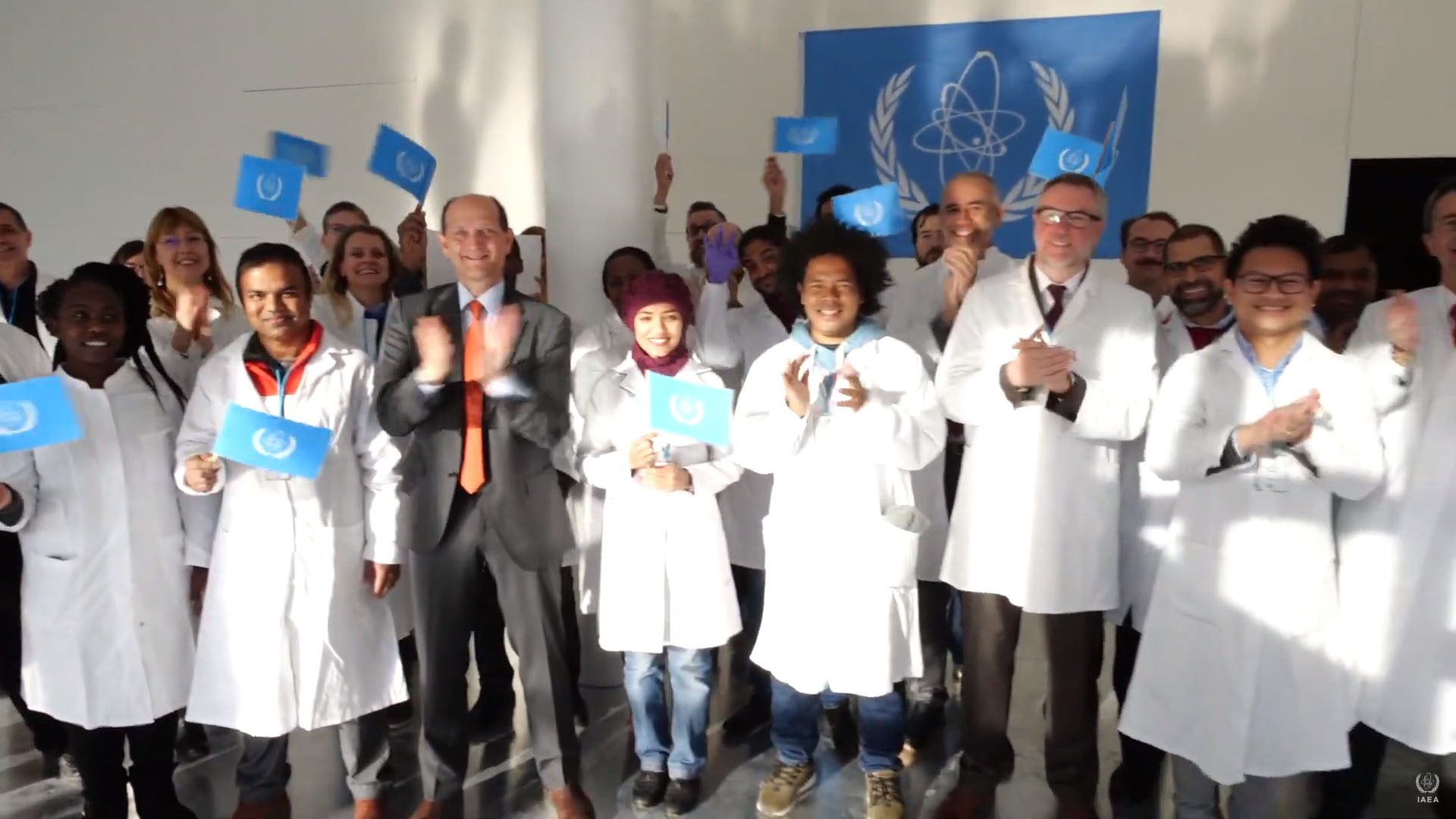 Staff of the IAEA Nuclear Applications laboratories gathered in Seibersdorf at the time of the inauguration to mark this special occasion.