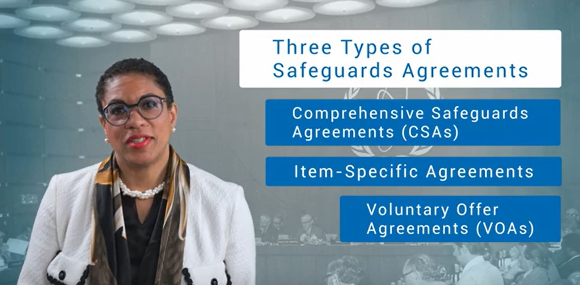In this presentation, an overview of the Legal Framework for IAEA Safeguards is provided by the IAEA Director General and the Office of Legal Affairs of the IAEA Secretariat. The presentation covers the important legal instruments that provide the mandate for the IAEA’s work in the area of safeguards, including the IAEA Statute, Project and Supply Agreements, Safeguards Agreements, Small Quantities Protocols and Additional Protocols, as well as the IAEA’s legislative assistance in these areas and gender equality.