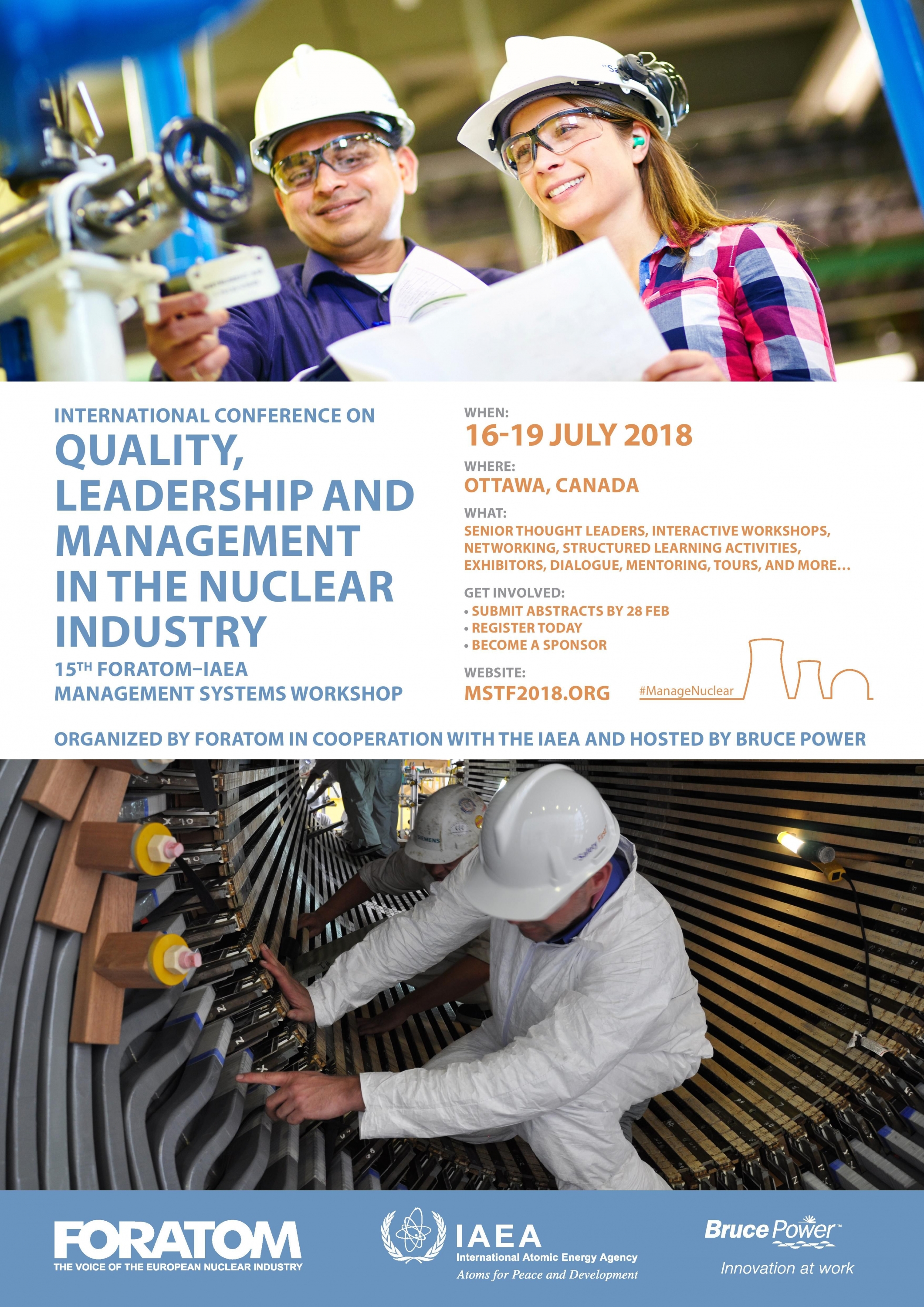 The International Conference on Quality, Leadership and Management in the Nuclear Industry – 15th FORATOM-IAEA Management Systems Workshop, to be held in Ottawa, Canada from 16 to 19 July 2018, will focus on these latest trends.