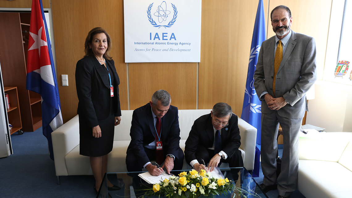 Mr Daniel Aldama, President of the Agency for Nuclear Energy and Advanced Technologies (AENTA), and Mr Dazhu Yang, IAEA Deputy Director General and Head of the Department of Technical Cooperation, have signed Cuba’s Country Programme Framework (CPF) for the period of 2018–2023 on 1 June 2017. They were accompanied by HE Ms Elba Rosa Pérez Montoya, Minister of Science, Technology and Environment as well as HE Mr Juan Antonio Fernandez Palacios, Resident Representative to the IAEA. A CPF is the frame of reference for the medium-term planning of technical cooperation between a Member State and the IAEA and identifies priority areas where the transfer of nuclear technology and technical cooperation resources will be directed to support national development goals.