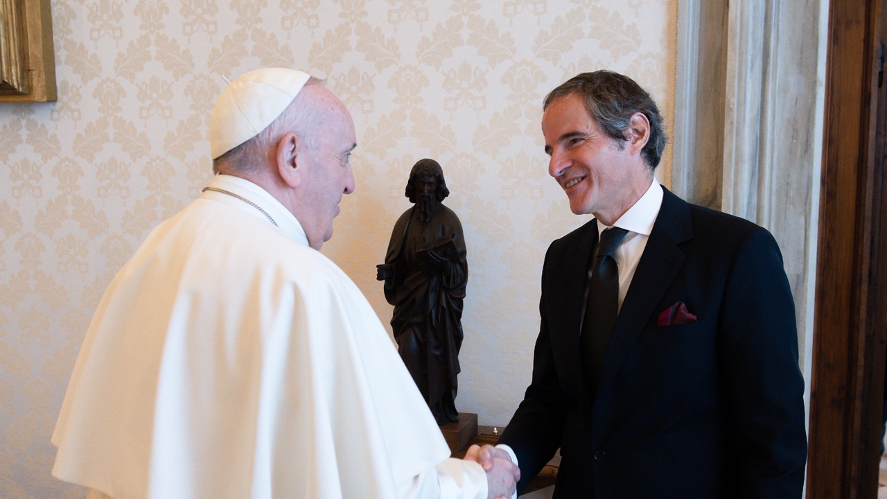 An instrument of peace, an accelerator of human health and development, a force of integral ecology, and a voice of harmony in troubled times.These were the words Director General Rafael Mariano Grossi used to describe the IAEA in a private audience with Pope Francis in Rome this morning.