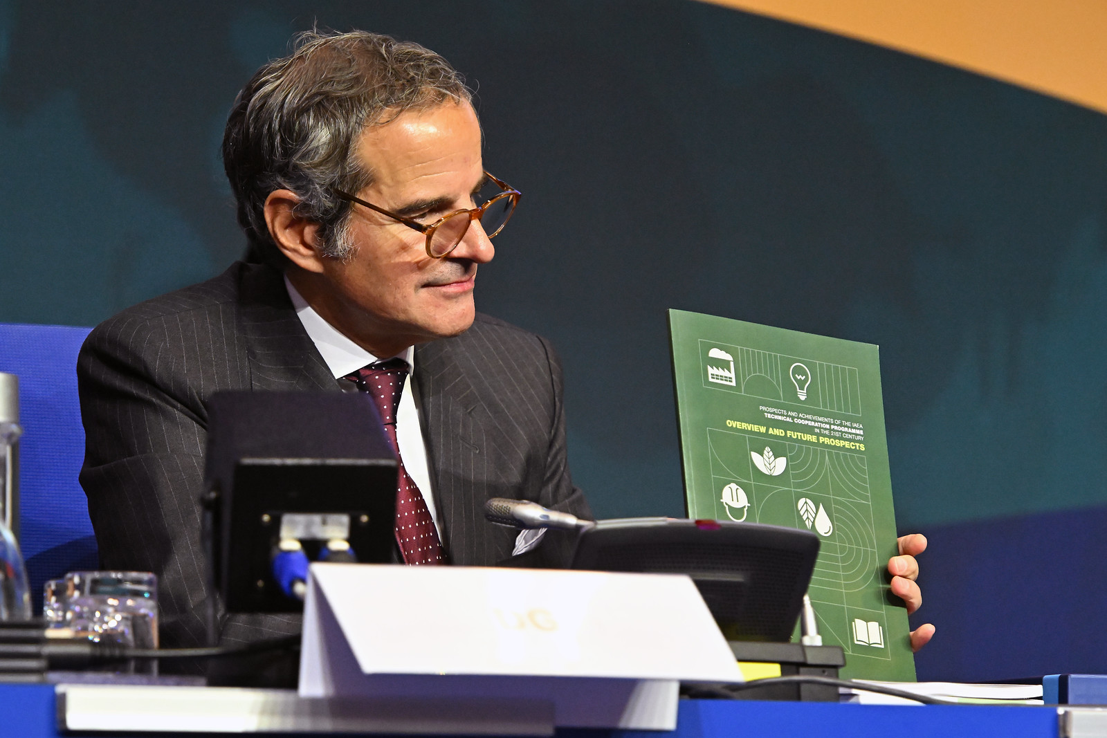 IAEA Director General Rafael Grossi launches the publication Prospects and Achievements of the IAEA Technical Cooperation Programme in the 21st Century at the all-region meeting of National Liaison Officers. (Photo: D. Calma/IAEA)&nbsp;