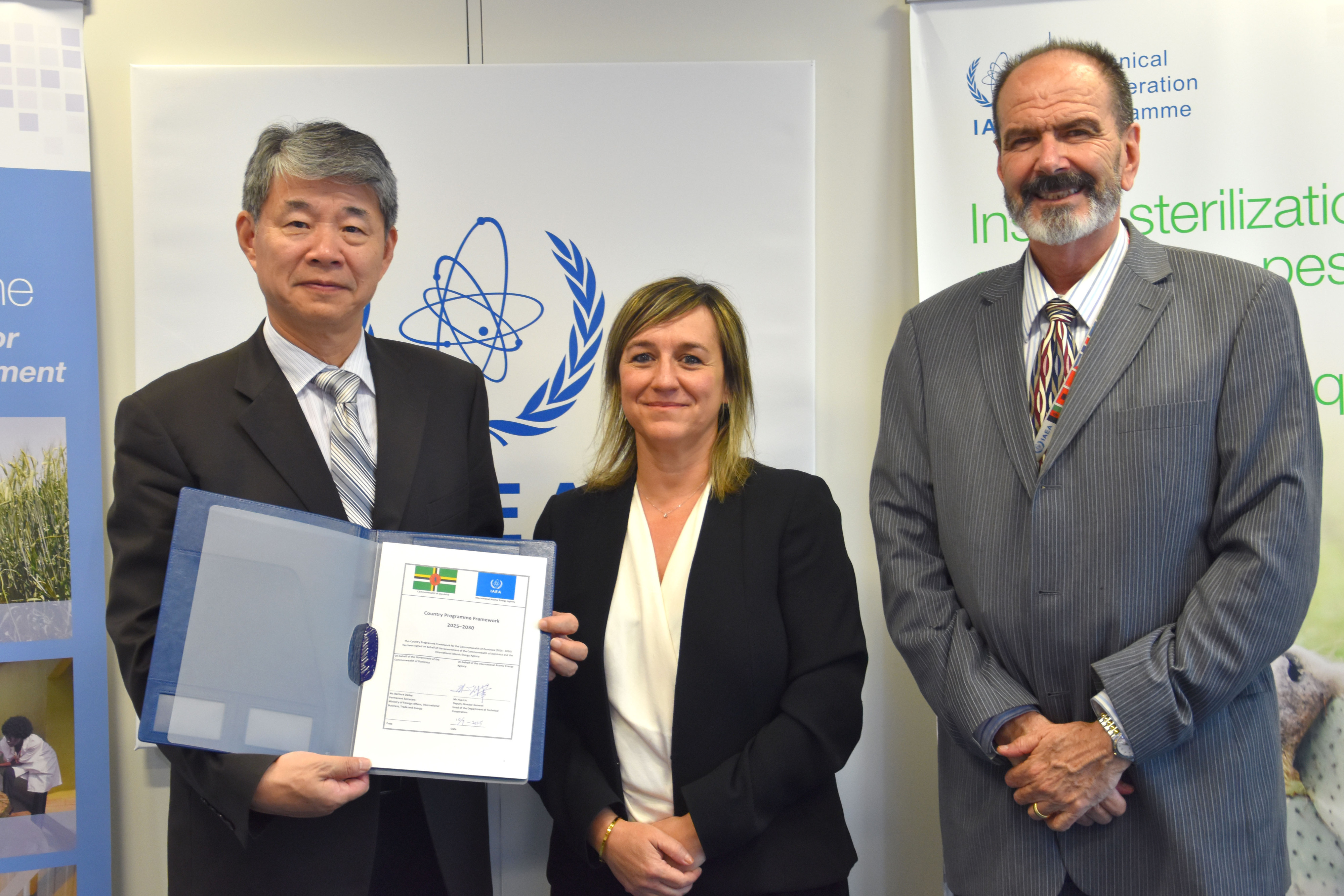 Barbara Dailey, Permanent Secretary for the Ministry of Foreign Affairs, International Business, Trade and Energy, and Hua Liu, IAEA Deputy Director General and Head of the Department of Technical Cooperation, signed Dominica’s Country Programme Framework (CPF) for the period of 2025-2030 on 10 July 2025. A CPF is the frame of reference for the medium-term planning of technical cooperation between a Member State and the IAEA and identifies priority areas where the transfer of nuclear technology and technical cooperation resources will be directed to support national development goals.