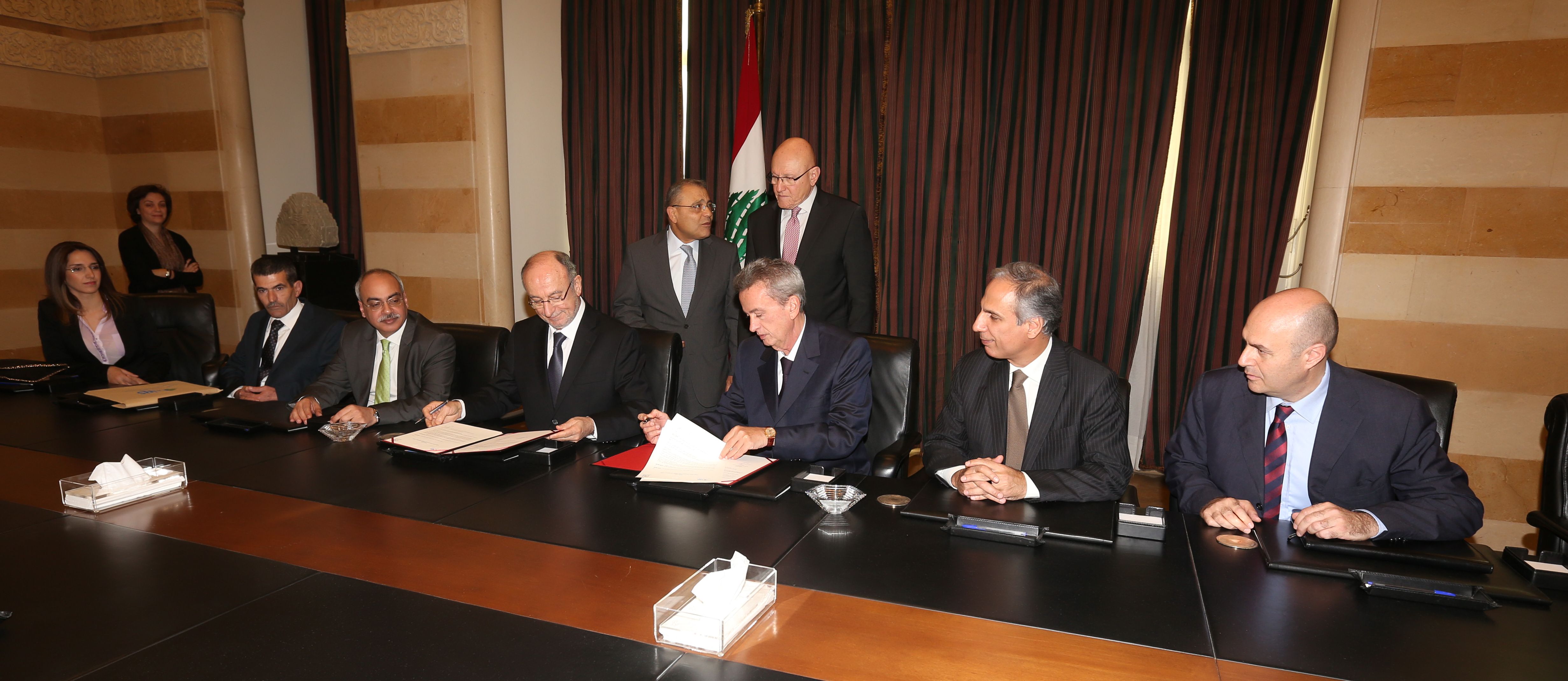 Mr. Souheil Bawji (Secretary General of the Council of Ministers), Mr. Mouin Hamze (Secretary General, CNRS), Mr. Bilal Nsouli (General Director, LAEC), Mrs. Alice Bejjani (Researcher, LAEC), Mr. Riad Salame (Governor of the BDL), Mr. Raed Sharafeddine (1st Deputy Governor, BDL) and Mr. Mazen Hamdan (Executive Director, Cash Operation Department, BDL) participated in the signature ceremony.