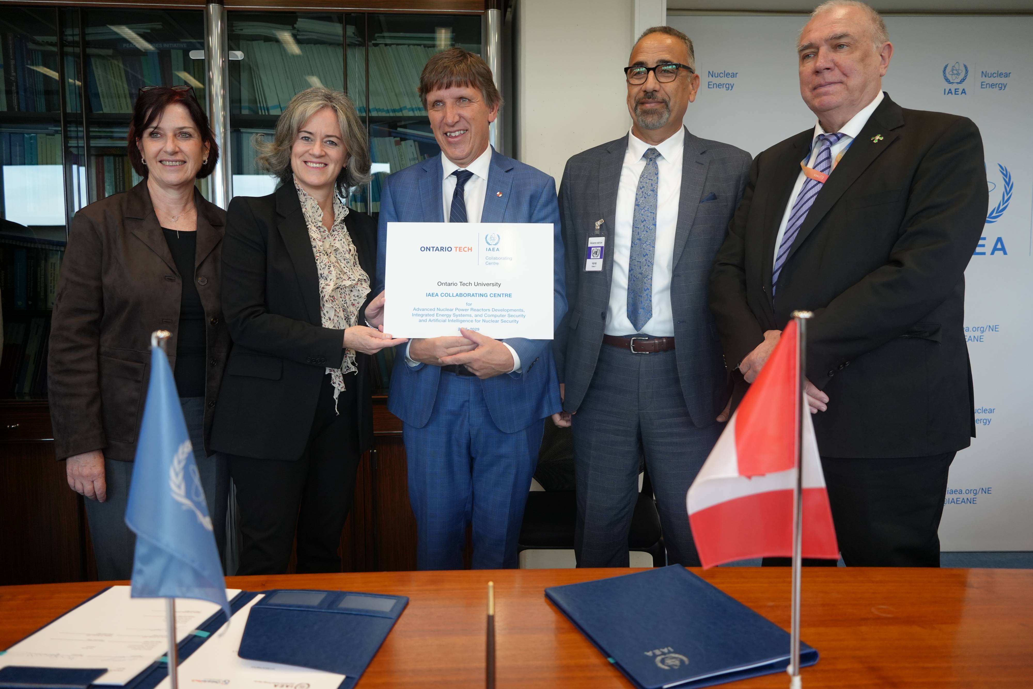 Under the new agreement, concluded at IAEA headquarters on 23 October, Ontario Tech University will continue its work on small modular reactors (SMRs), hybrid energy systems that integrate nuclear power with renewables like solar and wind, and nuclear cogeneration. Cogeneration involves using power reactors both to produce electricity and to process heat for applications such as desalination and district heating.